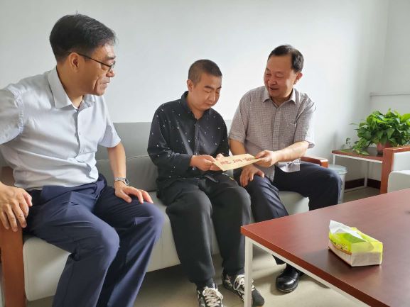 國投公司黨委專職副書記、副董事長張文在我公司慰問困難黨員,并送上慰問金,水務公司黨支部書記、董事長潘軍陪同慰問。